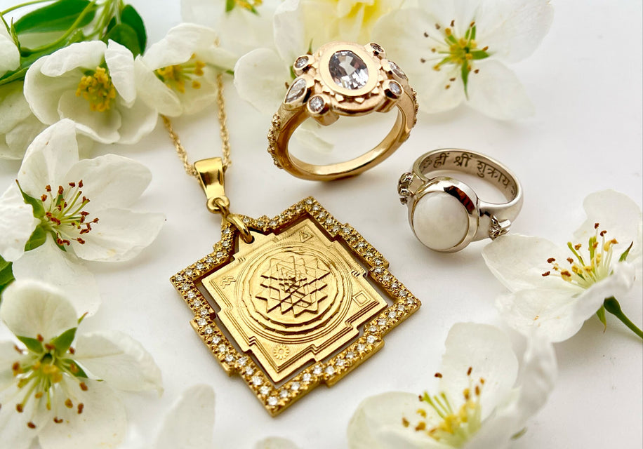 Jyotish or Vedic Astrology is the most advanced tradition in the world to determine your most supportive planetary gemstones. It requires an advanced knowledge of Jyotiṣa learned from qualified teachers, top quality untreated gems, and fine craftsmanship to be able to recommend and create authentic astrological jewelry that is both effective and beautiful. Oocha Mani is the result of decades of study and dedication to preserving the art and science of Vedic jewelry. Using exclusively the finest untreated gemstones from conscionable sources, we offer a luxury that was once reserved for royalty. Book a Vedic astrology consultation today to discover which gemstone upayas / remedies will be most beneficial for you.